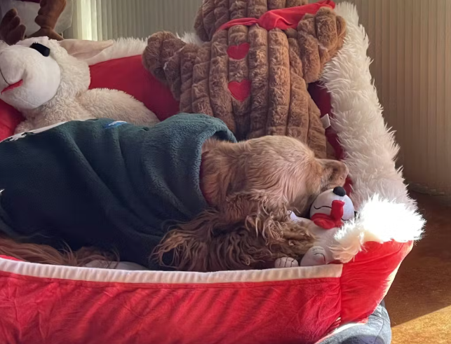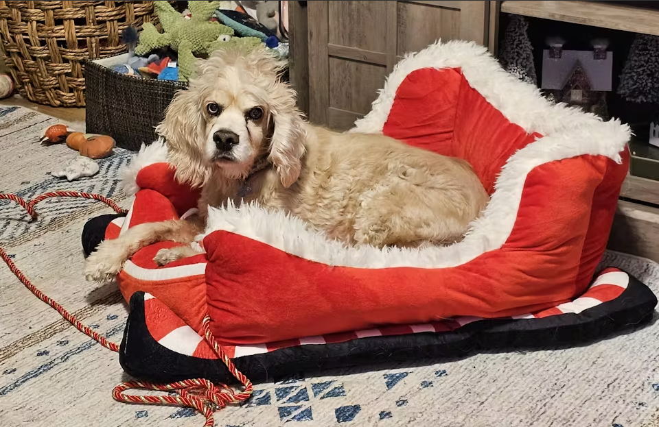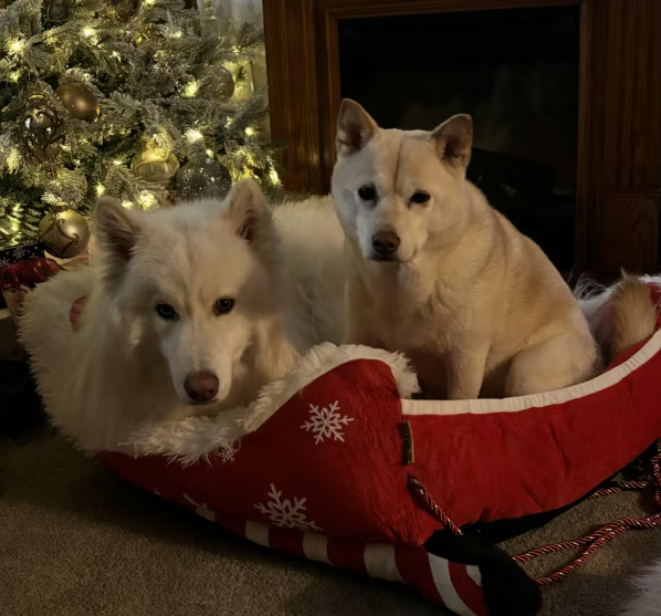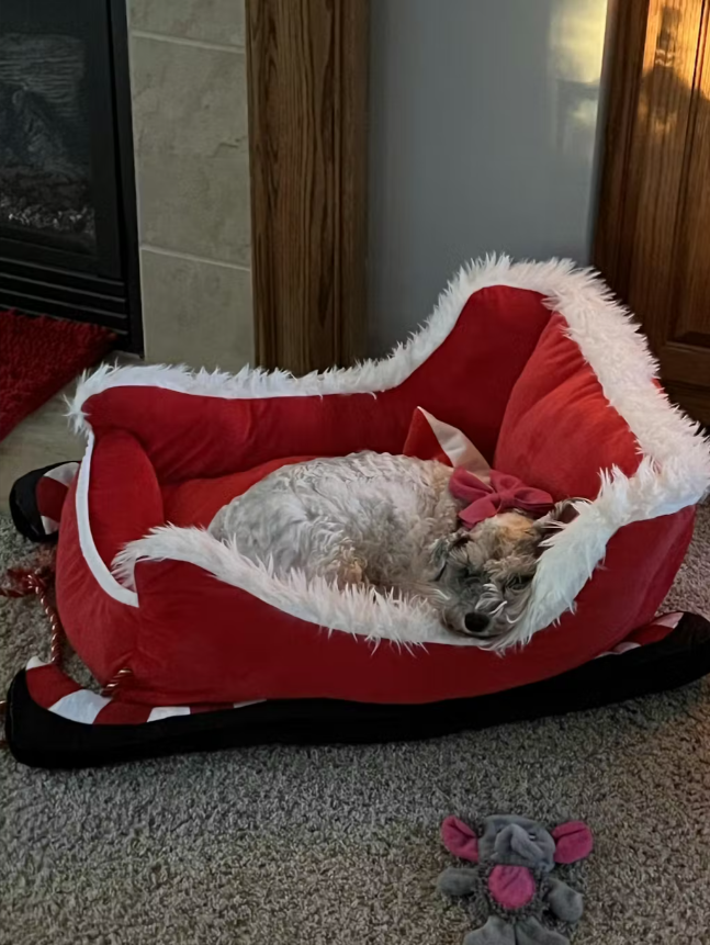 La cama para perros con forma de trineo llegó con suficiente antelación para Navidad y les encanta!