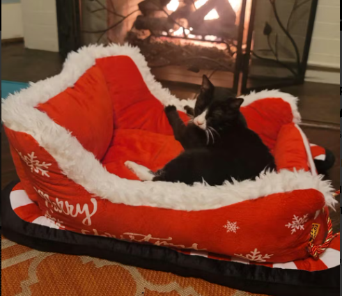 ¡Es una monada! Mi perrito de 5 kilos se metió de un salto en cuanto llegó. Es el complemento perfecto para la decoración navideña de los perros.